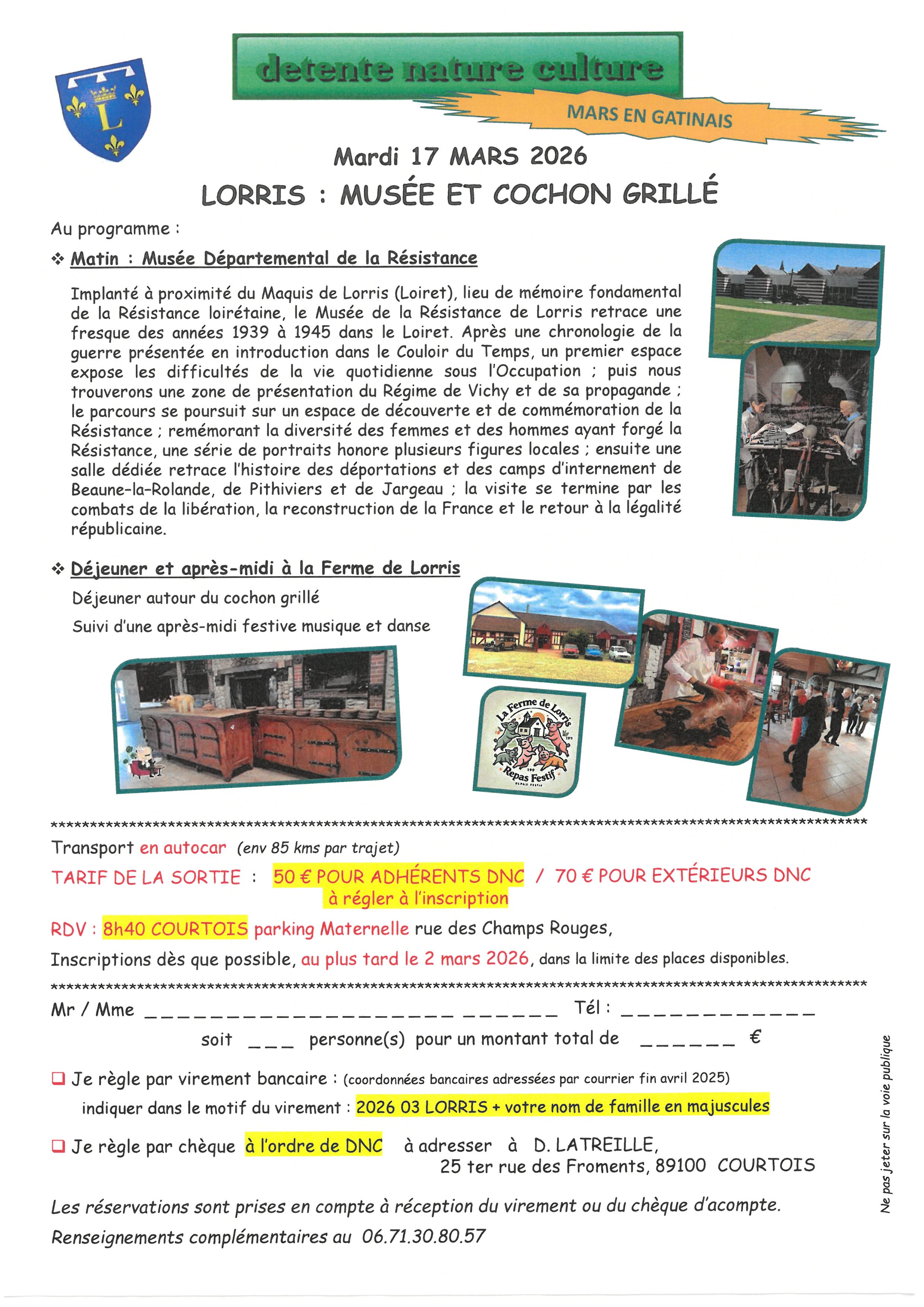 Vous êtes ici : Accueil > DNC, LORRIS : 17 MARS 2026, MUSÉE ET COCHON GRILLÉ