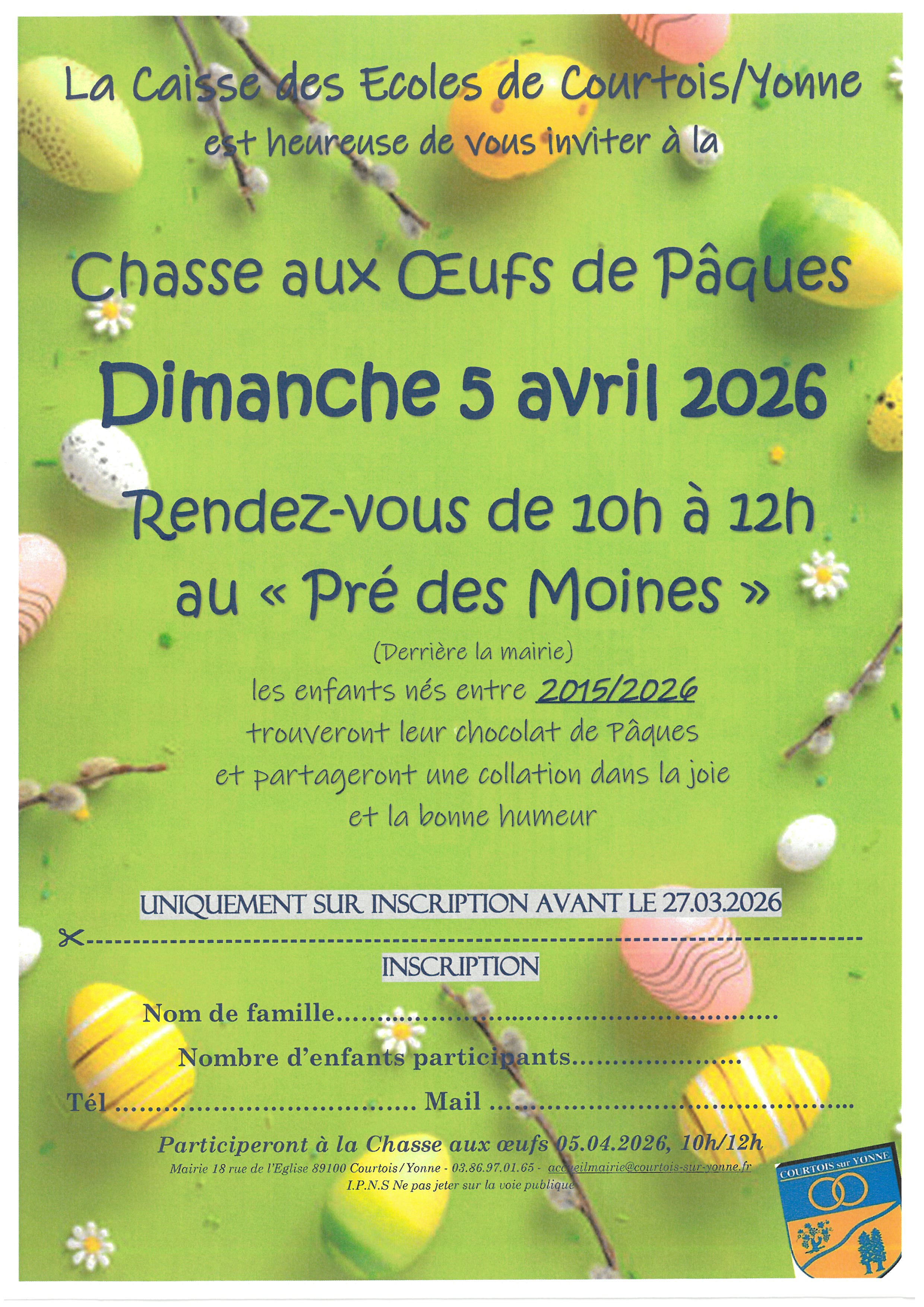 *- uniquement pour les enfants de Courtois-sur-Yonne -*